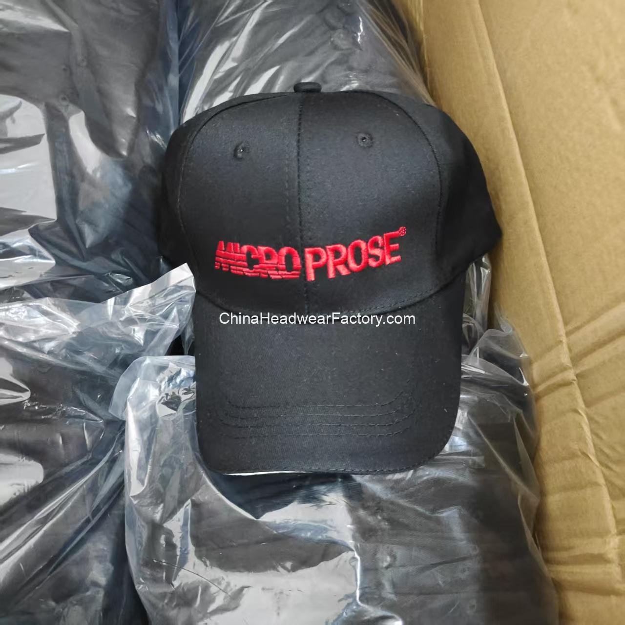 HN19 Custom Embroidered Print Logo Flat Curved Bill Brim Blank Golf 6 Panel Red Fitted Sport Hats for Men