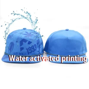 Blank Custom Water Activated Print Mens 6 Panel Polyester Flat Bill Surf Structured Perforated Laser Cut Golf Hat Baseball Caps