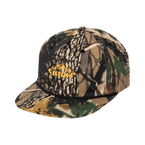 Stylish embroidered camouflage snapback caps offer personalized logo options for a fashionable flat-brim headwear choice.