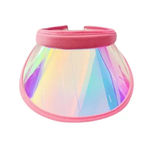 Add a touch of fun and style with our unique, customizable plastic candy hats. These reflective visors and hats offer vibrant, iridescent hues for a memorable look.