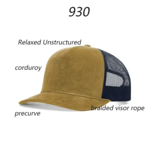 Elevate your style with our custom 5-panel hats featuring corduroy wool mesh construction plus distinctive Veracap embroidery. Classic trucker cap design.