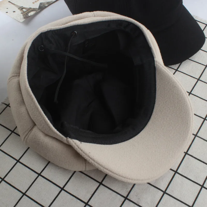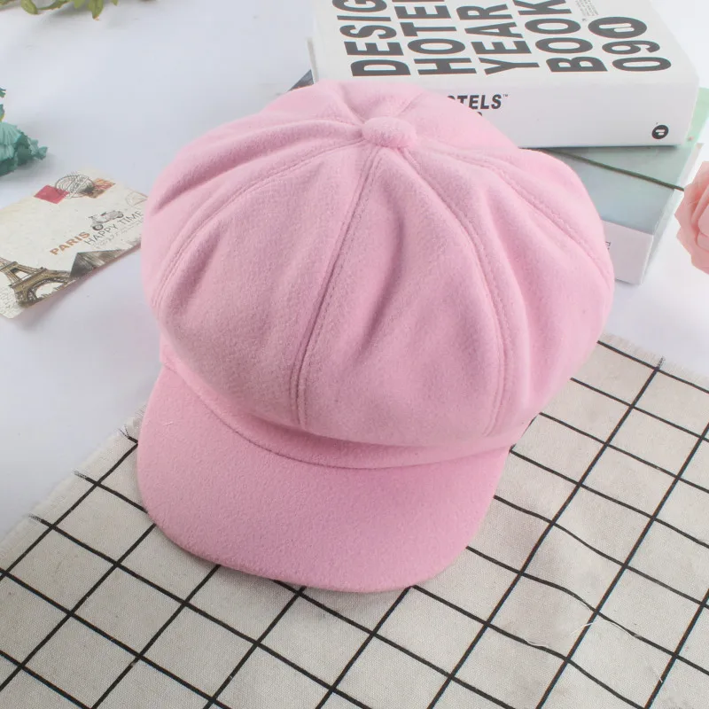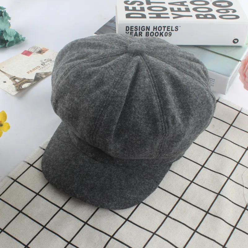 Autumn Winter Women Warm Newsboy Hat Solid Color Big Size Wool Felt Beret Cap