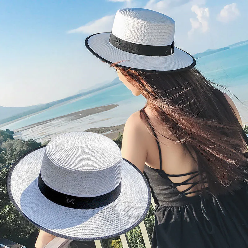 Beach Hats for Women M Letter Accessories Panama Straw Hat Summer UV Protection Sun Hat Gorras