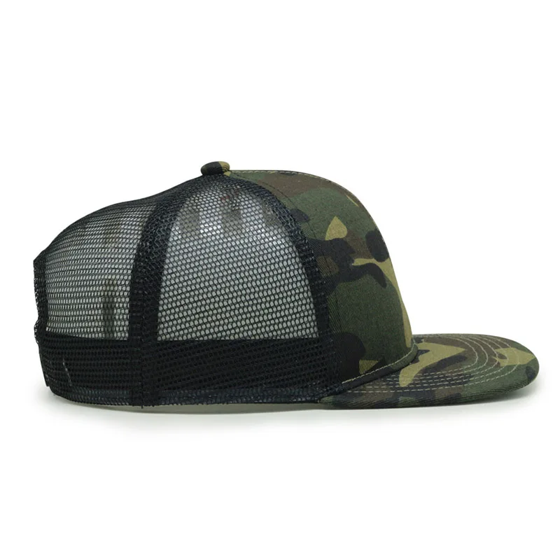 Introducing our Children’s Outdoor Character Flat Brim Trucker Cap, designed for fun and built to last. This cap combines rugged corduroy and herringbone fabrics with a comfortable terry lining for all-day wear. The eye-catching custom camouflage pattern is complemented by a bold puff print graphic, adding a unique character element that kids will love. The structured flat brim provides excellent shade during outdoor play, and the convenient snapback closure allows for easy size adjustment. Perfect for the park, playground, or any adventure.
