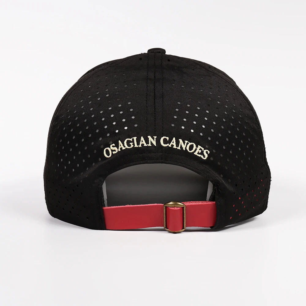 Custom Design 6 Panel Laser Cut Sports Hat Leather Strap Baseball Cap