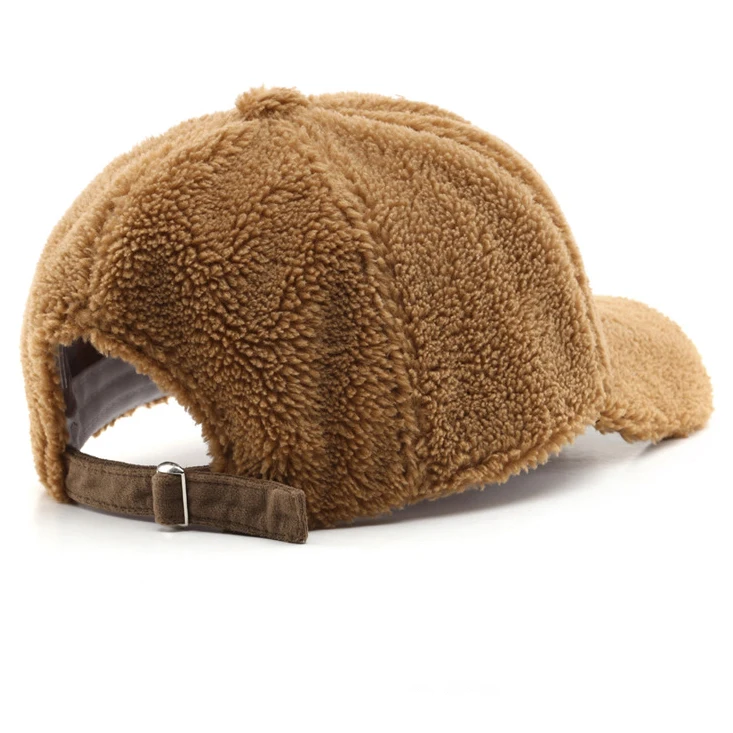 Product: Custom Designer Outdoor Faux Teddy Fur Baseball Cap Furry Warm Winter Sport Cap Blank Plain Curved Brim Fleece Baseball Cap (Model #F0G980K)