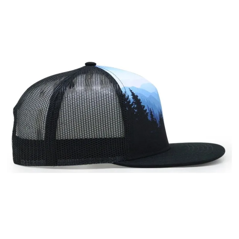 Custom Heat Transfer Print Dark Night Forest Character Snapback Cap Mesh Fabric Sublimation Trucker Hats Canvas Corduroy