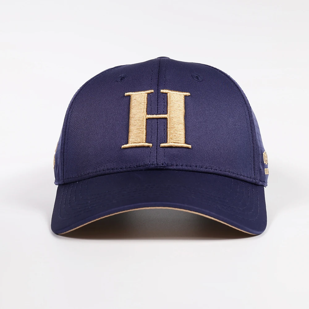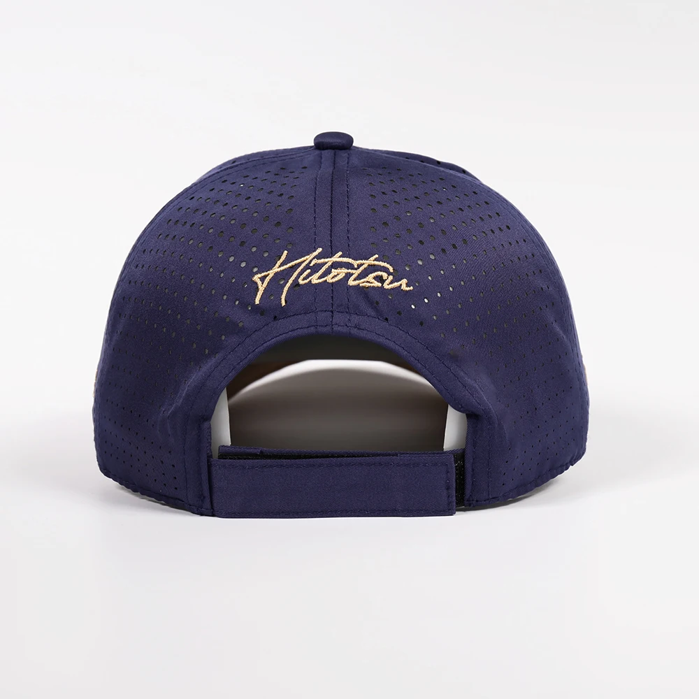 Custom High Quality 6 Panel Navy Blue Laser Cut Hole Drilling Quick Dry Sporty Common 3D Embroidery Logo Baseball Running Hat