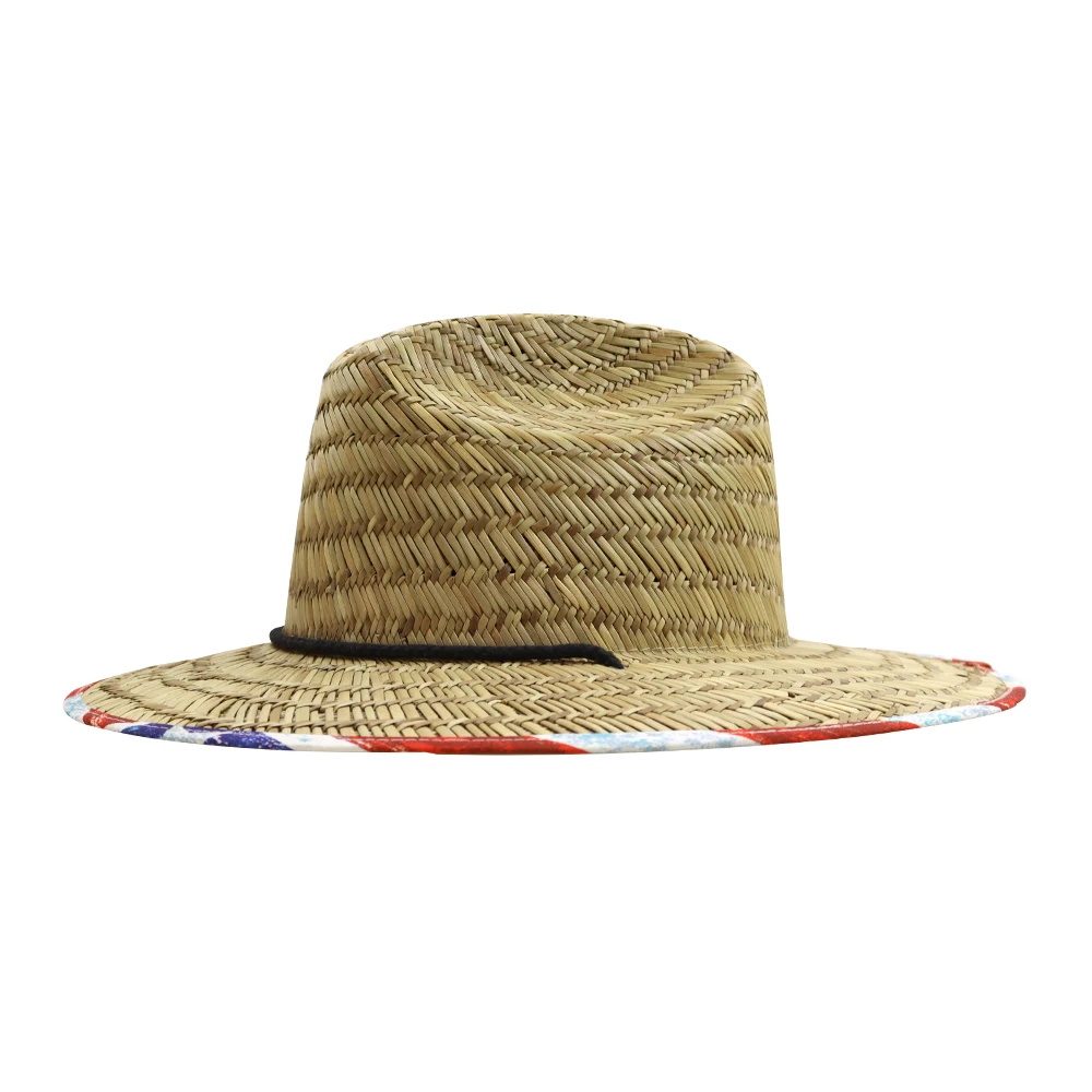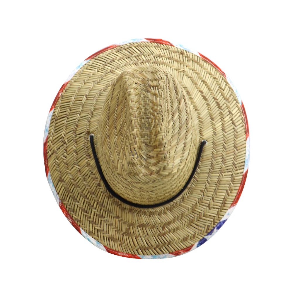 Custom Logo High Quality Natural Grass Straw Hat Unisex Sun Protection Lifeguard Cap for Beach Fishing Custom Printed Bottom