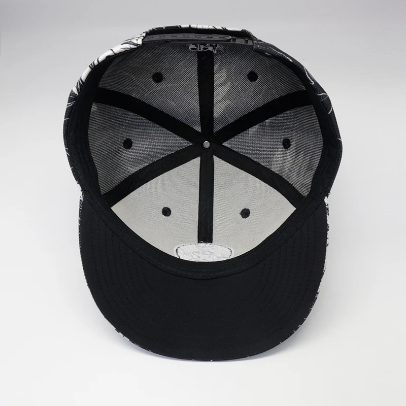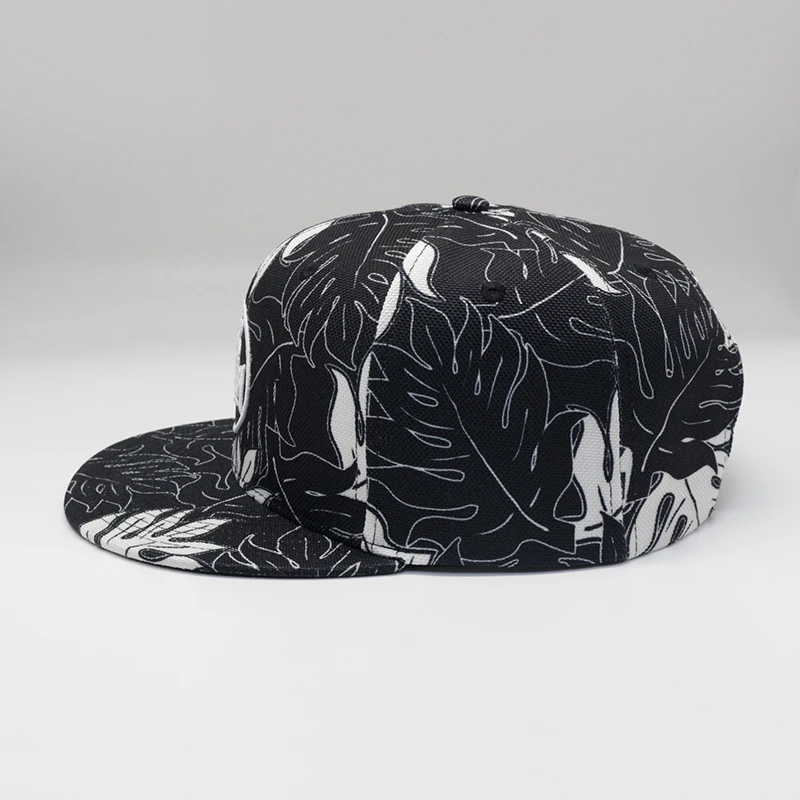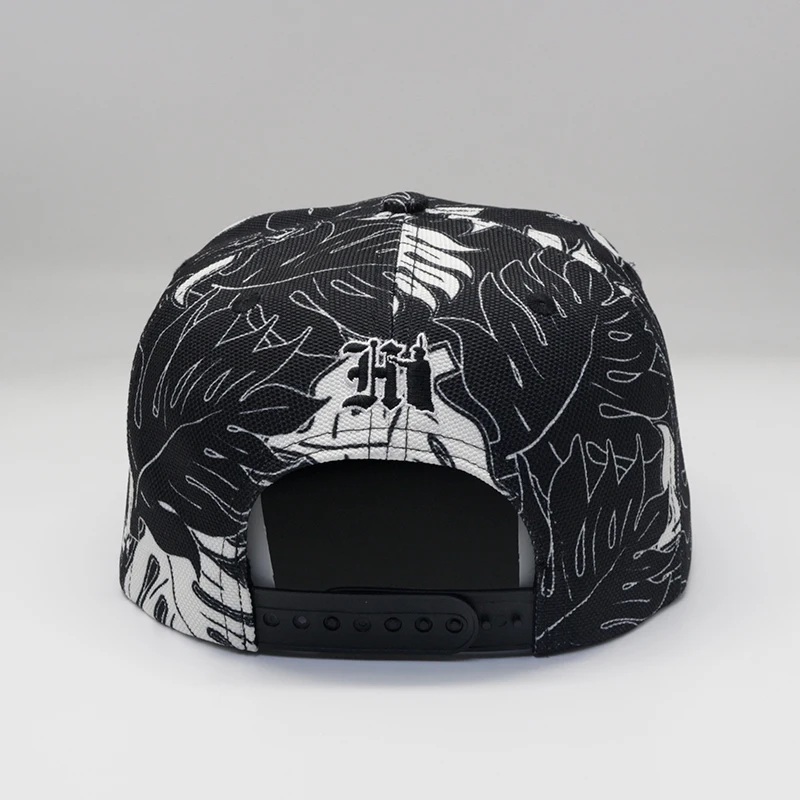 Custom Logo Hemp Sublimation Floral 6 Panel Snap Back Black