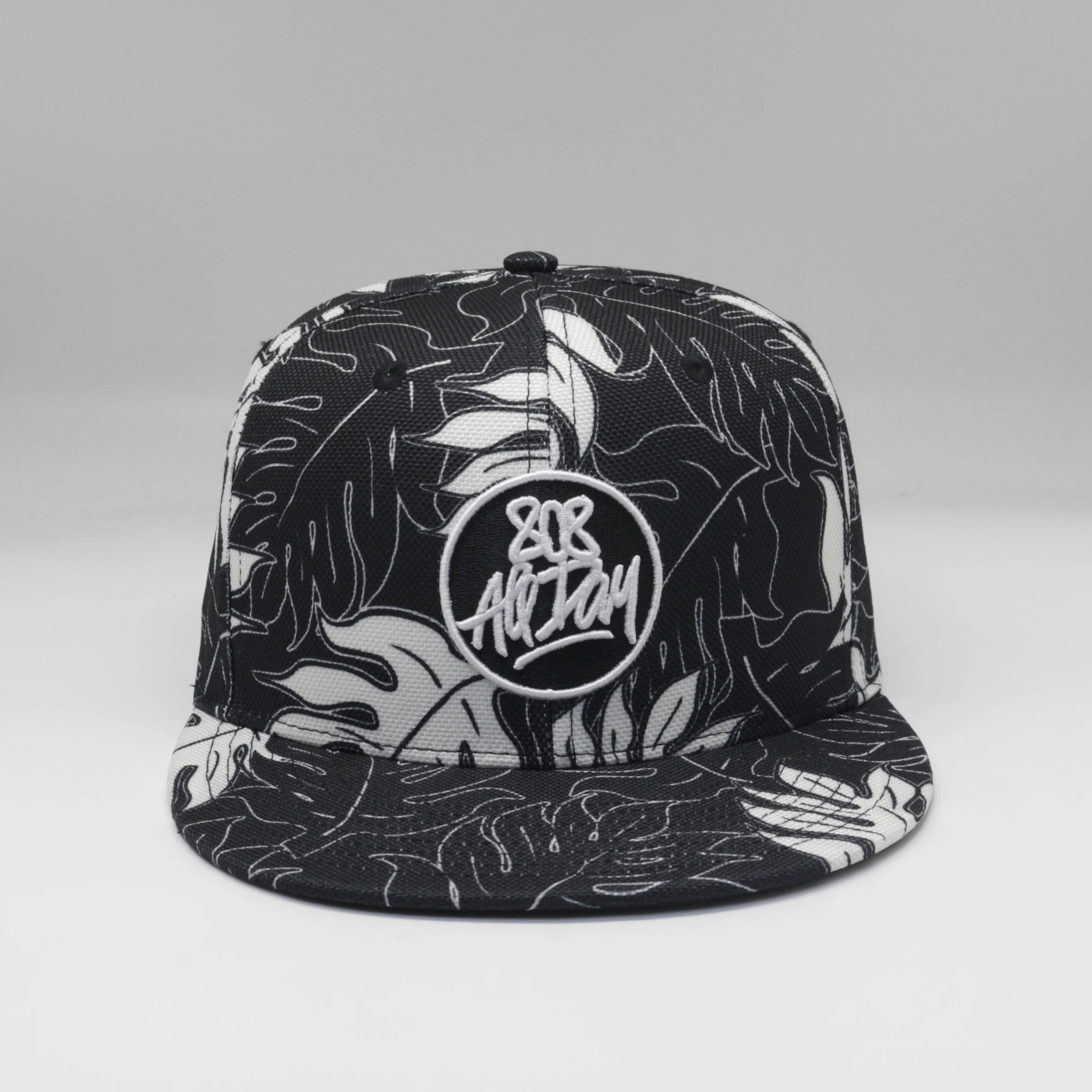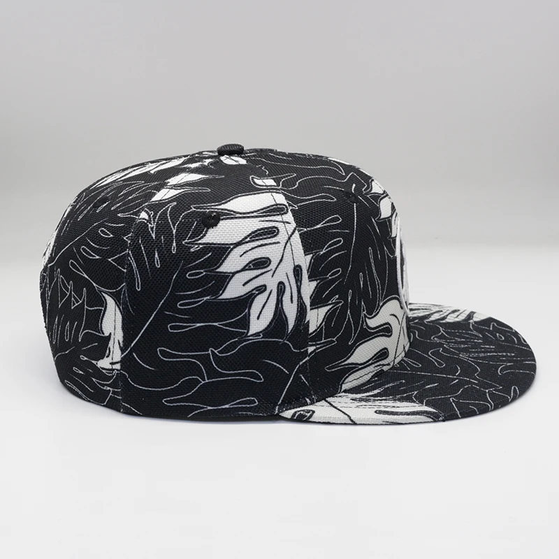 Product: Custom Logo Hemp Sublimation Floral 6 Panel Snap Back Black (Model #F6G788K)