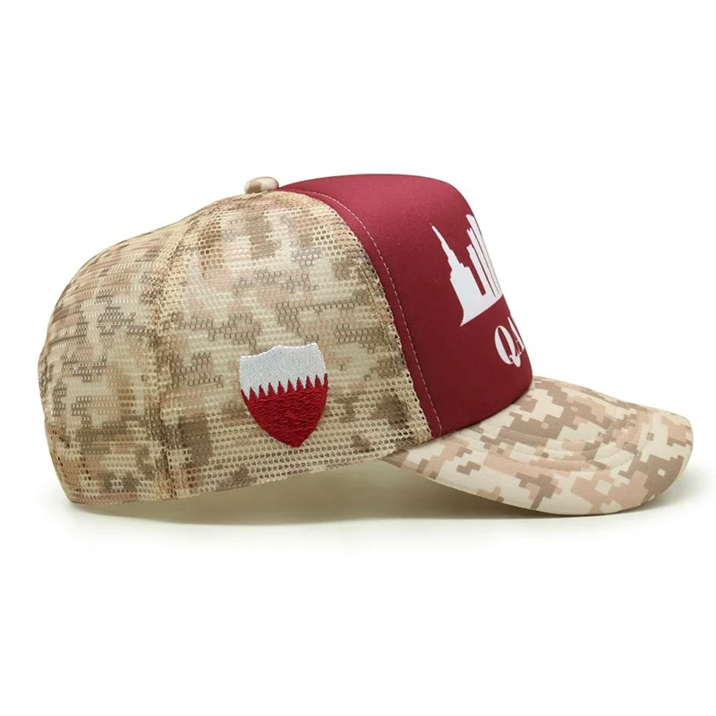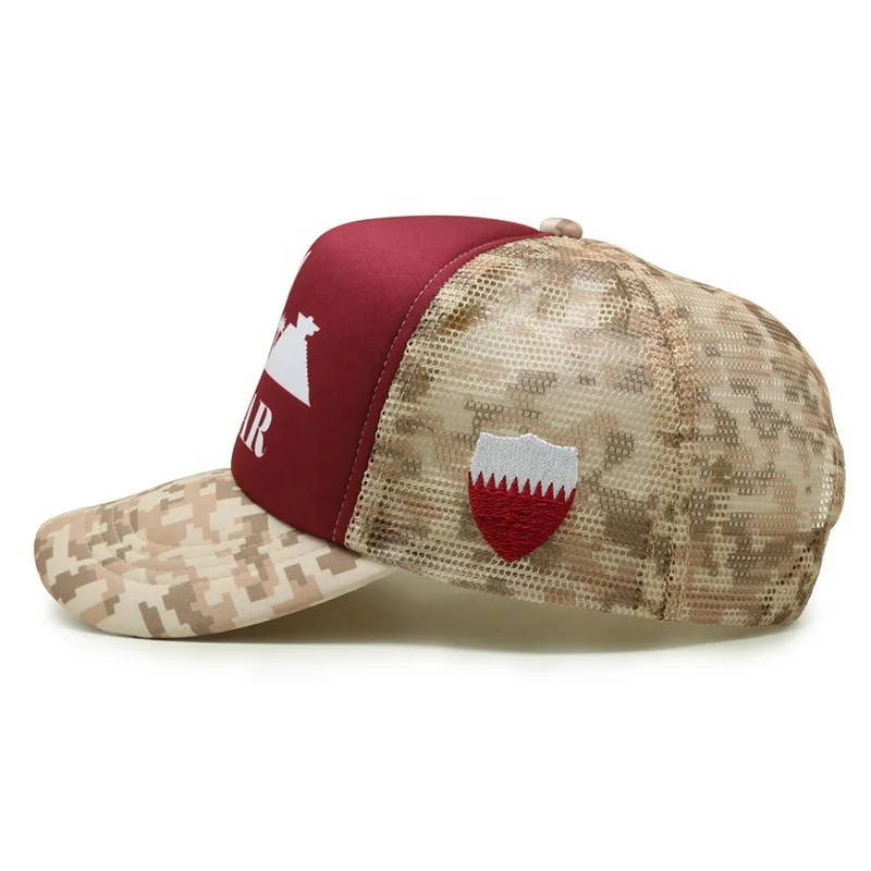 Custom Unisex 5 Panel Camo Trucker Hat Denim Canvas Mesh Brim Foam Summer Casual Outdoor