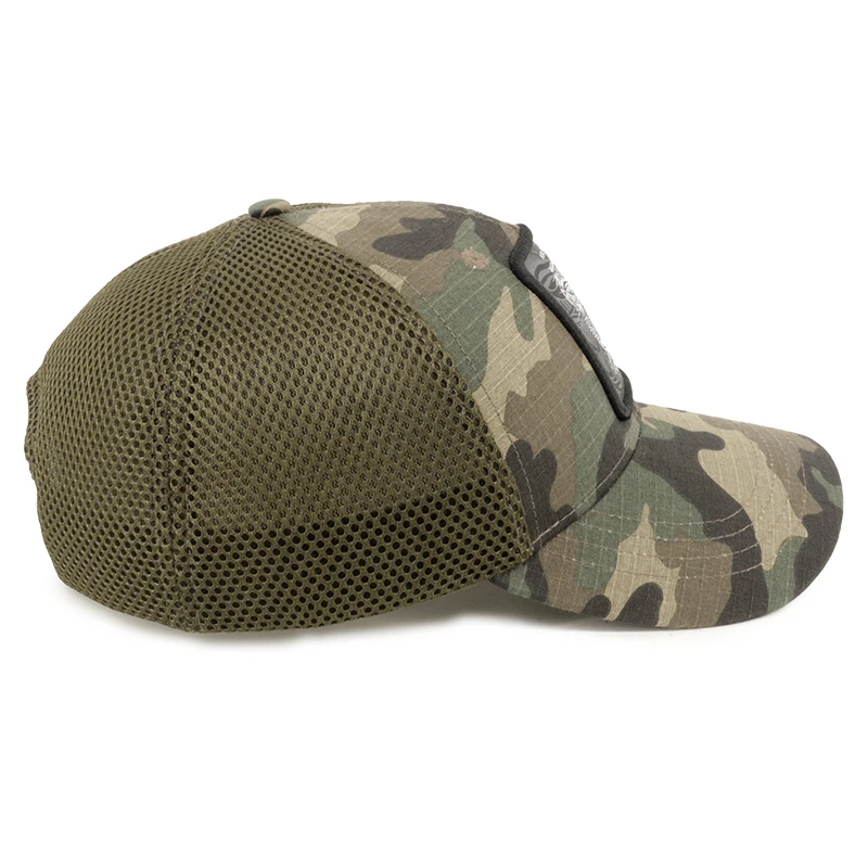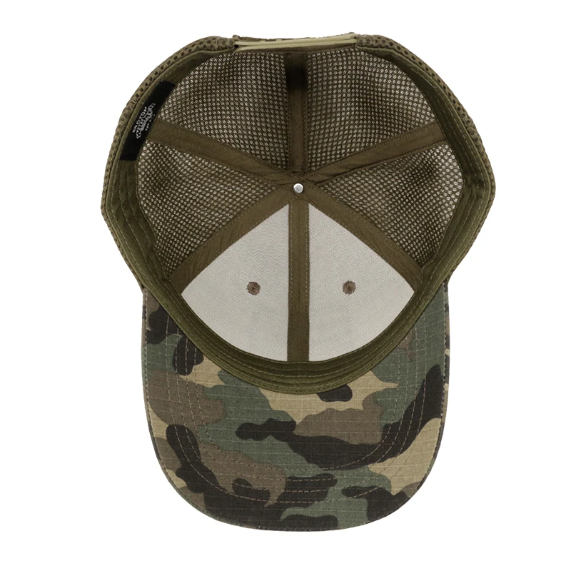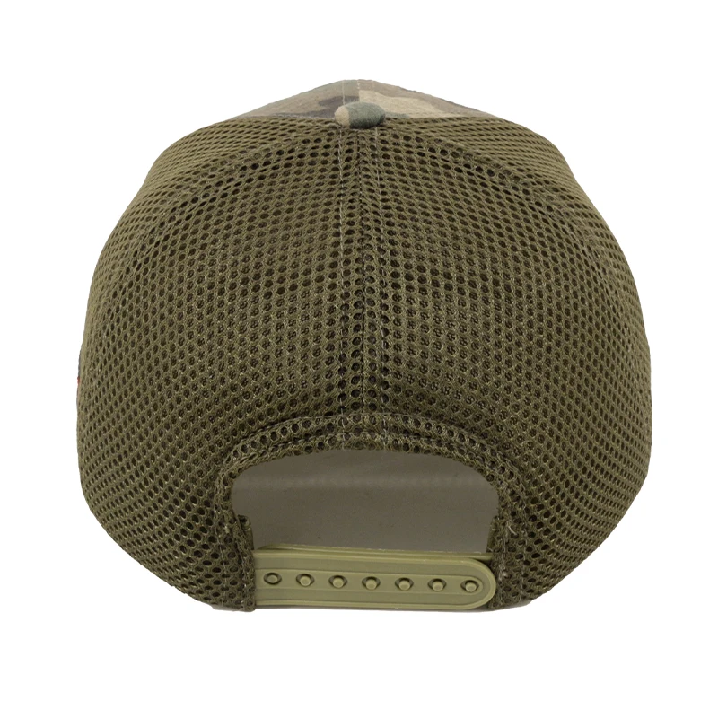 Elevate your style with this durable and versatile 5-Panel Embroidery Patch Logo Camouflage Mesh Cap. Crafted striking camouflage pattern, accented by a detailed embroidered logo, adds a touch of rugged sophistication.
