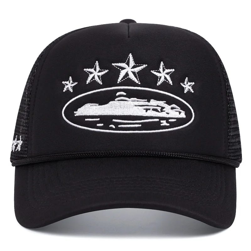 Fashion 5 Panels Baseball Cap With Rope Trucker Hat Star Embroidered Mesh Hat