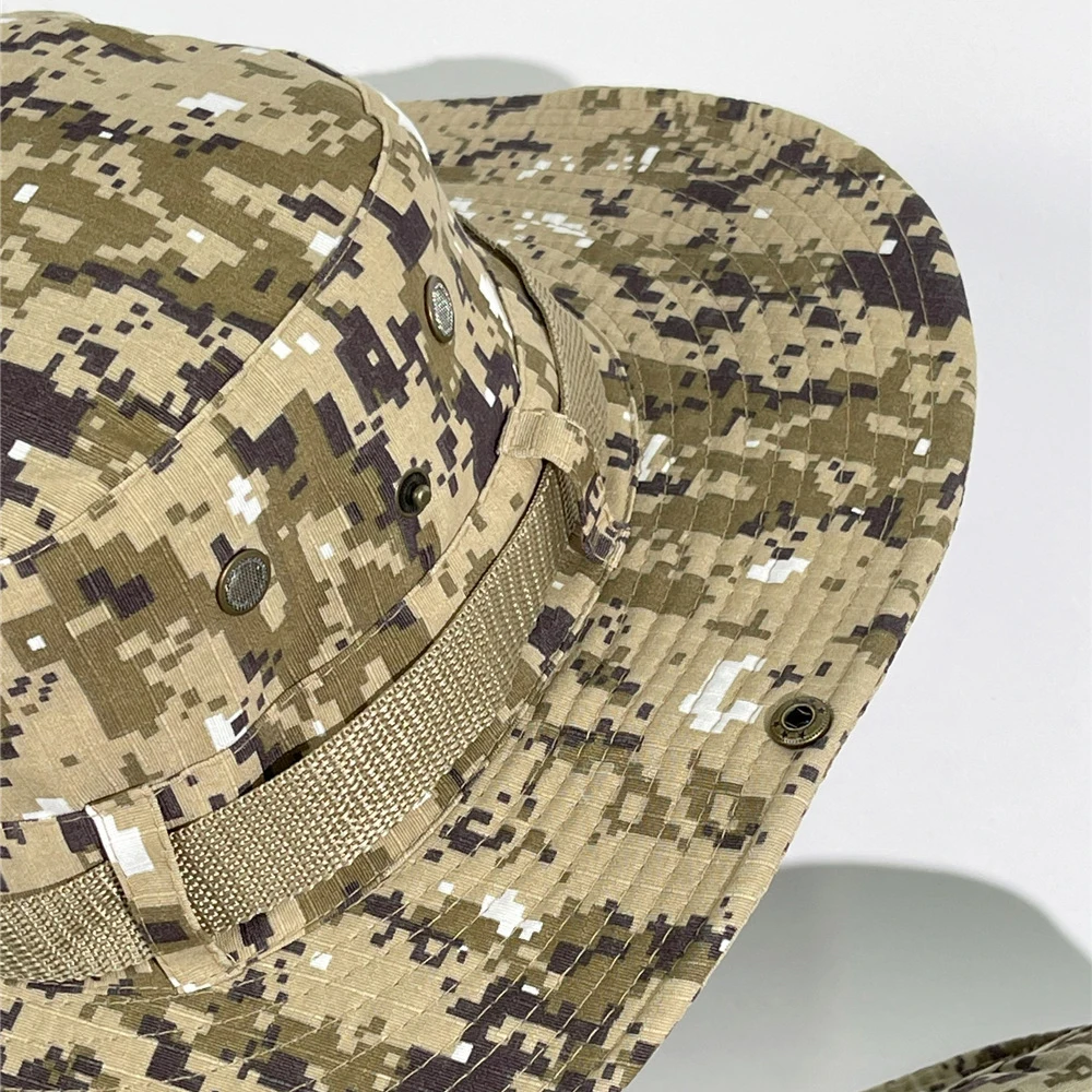 Foldable Wide Brim Jungle Fishing Safari Cotton Fisherman Bucket Camo Boonie Hat – Men’s
