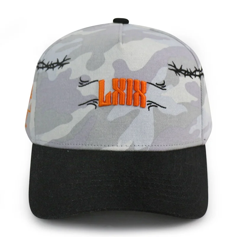 Custom High-Quality Two-Tone Camo A Frame Hip Hop Unisex Baseball Cap Elevate your style with our exceptional custom-made baseball cap. This comfortable cap features a sleek, A-frame design, perfect for a classic hip hop look. Crafted pattern, providing a unique and versatile aesthetic. A meticulously embroidered logo adds a touch of detail and brand recognition. The unisex design ensures it complements a wide range of personal styles. This cap is ideal for everyday wear, providing both comfort and a bold statement. It’s a stylish accessory that’s both practical and fashionable. Experience the difference of quality craftsmanship and a truly personalized look. Specifications: – Material: High-quality cotton blend – Design: Two-tone camouflage pattern – Logo: Embroidered – Fit: Comfortable and adjustable – Gender: Unisex Discover the perfect cap to express your individuality.