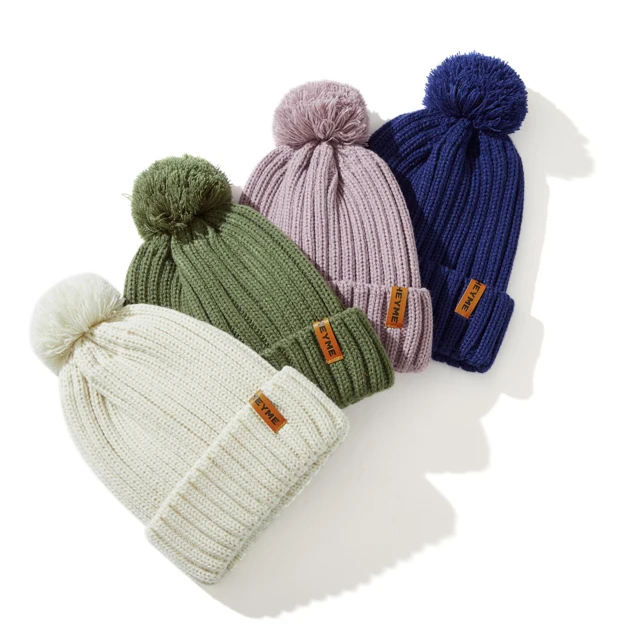 High Quality 100% Acrylic Elastic Knitted Winter Baby Beanie Hat Pompom Warm Toddler Hat for Beach Business Use Customizable