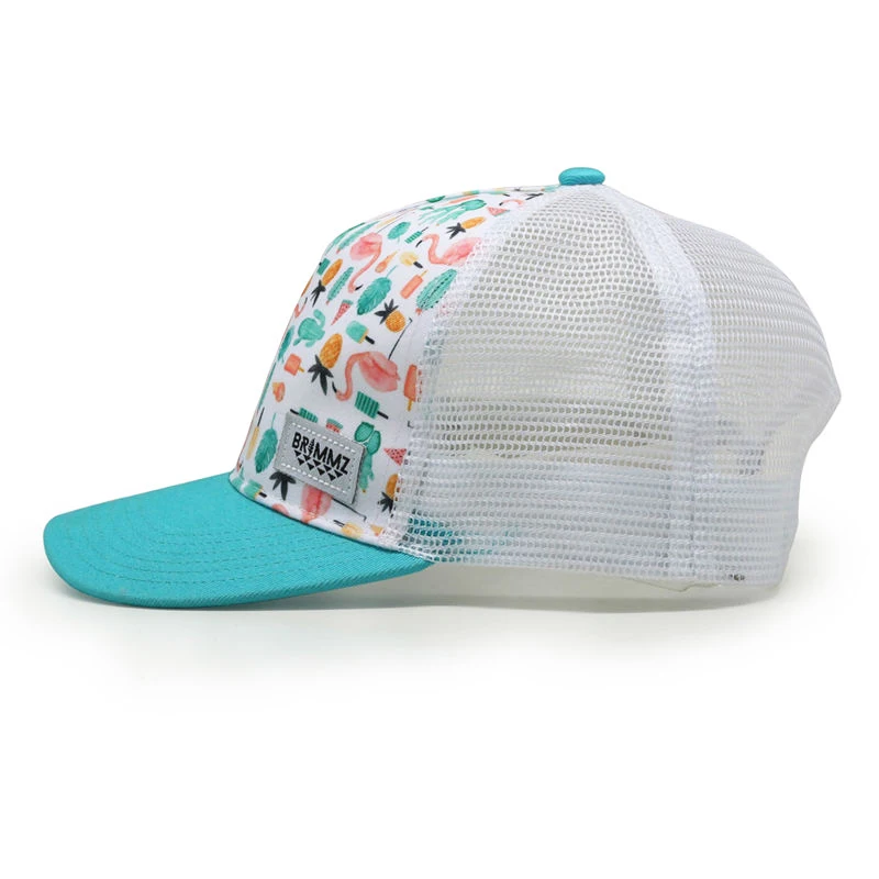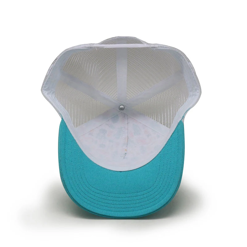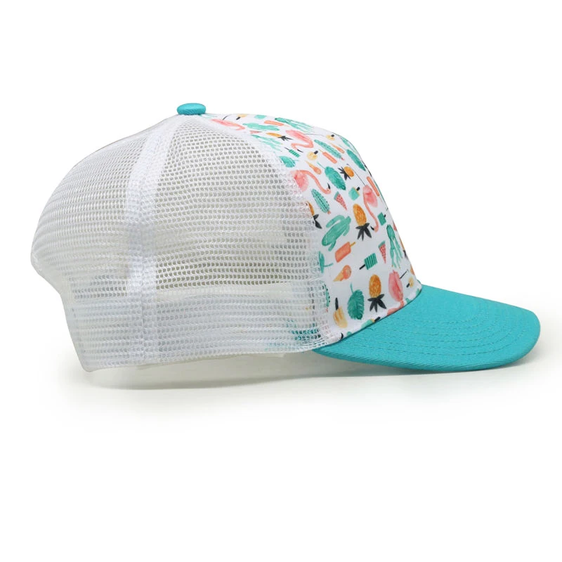 Custom Logo Denim Trucker Cap – Floral White Mesh Sublimation Print