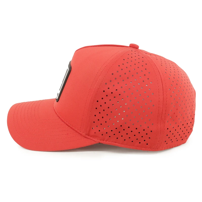 Elevate your style with this high-quality custom PVC patch logo polyester 5-panel laser-cut hole perforated hat baseball cap. Crafted perforated design promotes breathability, providing all-day comfort. The polyester material is designed for long-lasting wear and resilience. A versatile accessory, this hat is ideal for a variety of settings and personal expression.