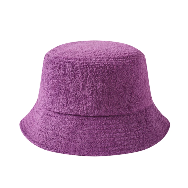 Solid Color Terry Towel Bucket Hat Embroidery Logo Travel Daily Use