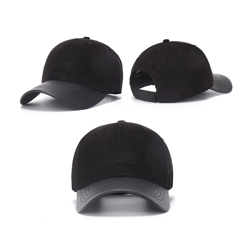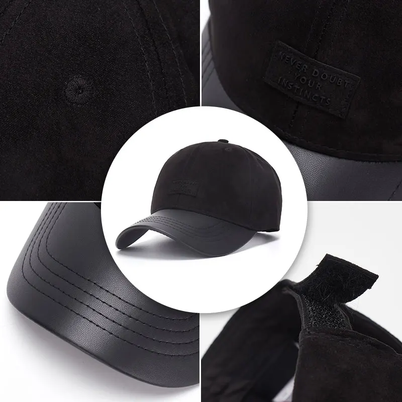 High Quality Unisex 5-Panel Baseball Cap Sporty Design Checked Pattern Fashion Leather Brim Cotton Outdoor Sports Cap