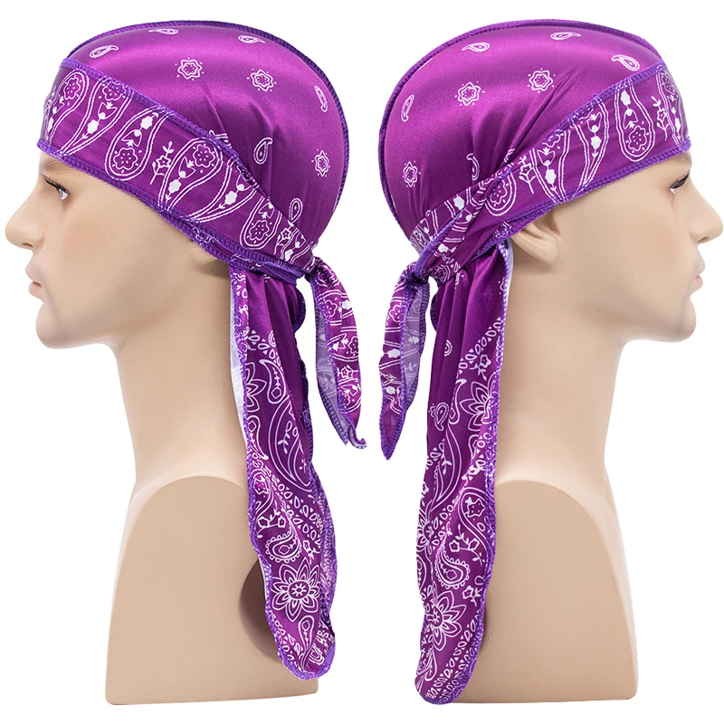 Hip Hop Unisex Do Du Doo Rags Cap Headwraps Long Tail Paisley Bandana Silky Durag for Men Women Silk 360 Wave