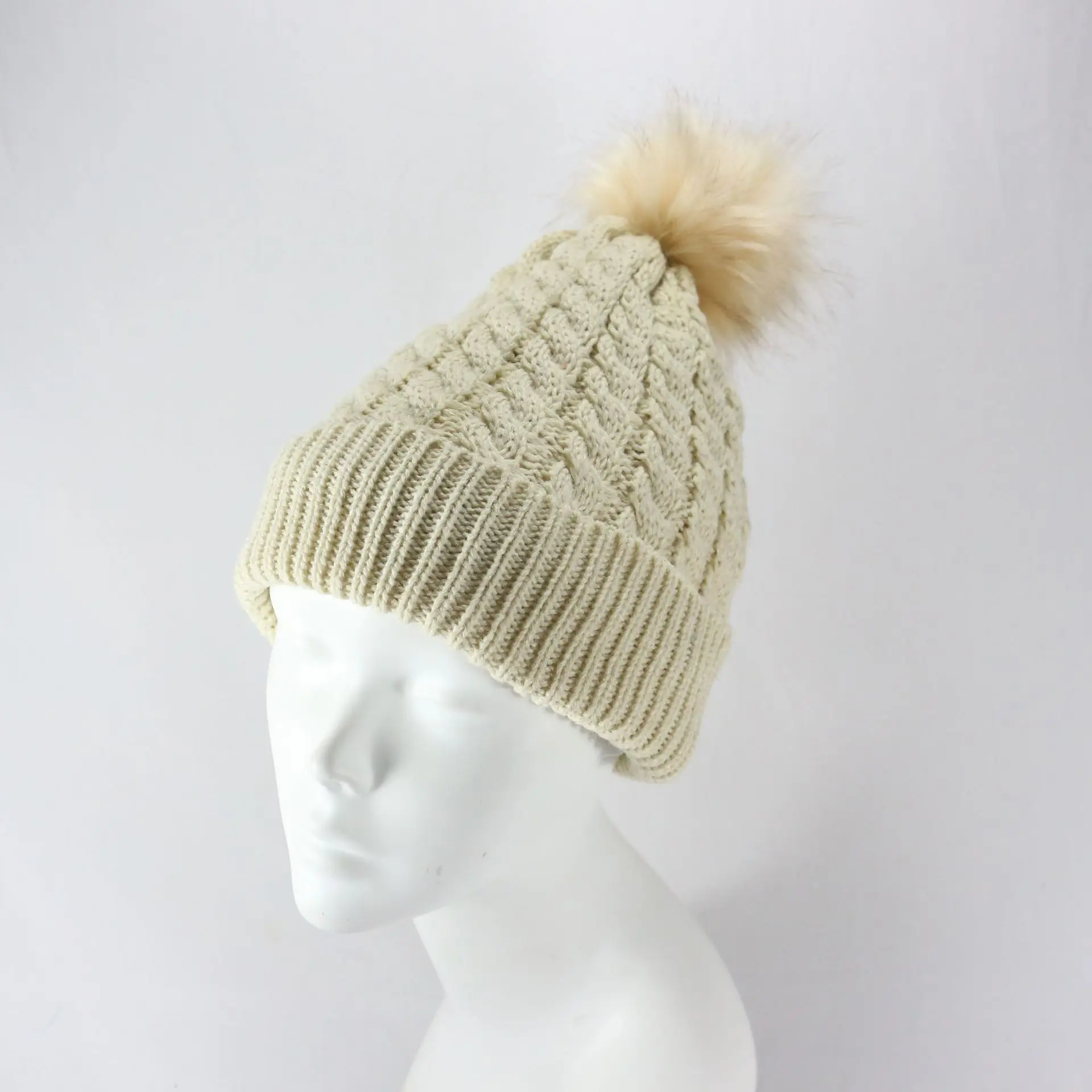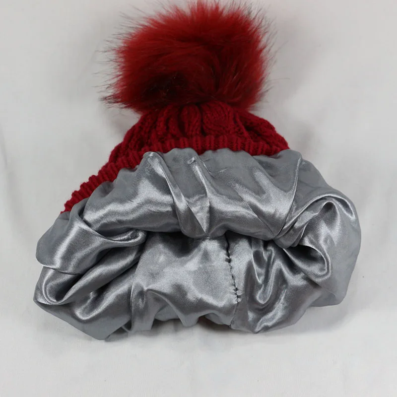 Blank Knit Hat Satin Lined Winter Beanie Women’s Pompom Cap