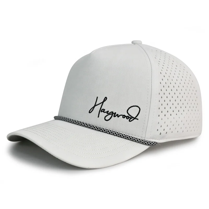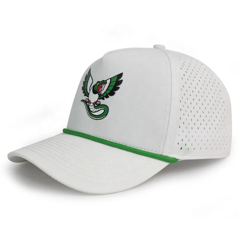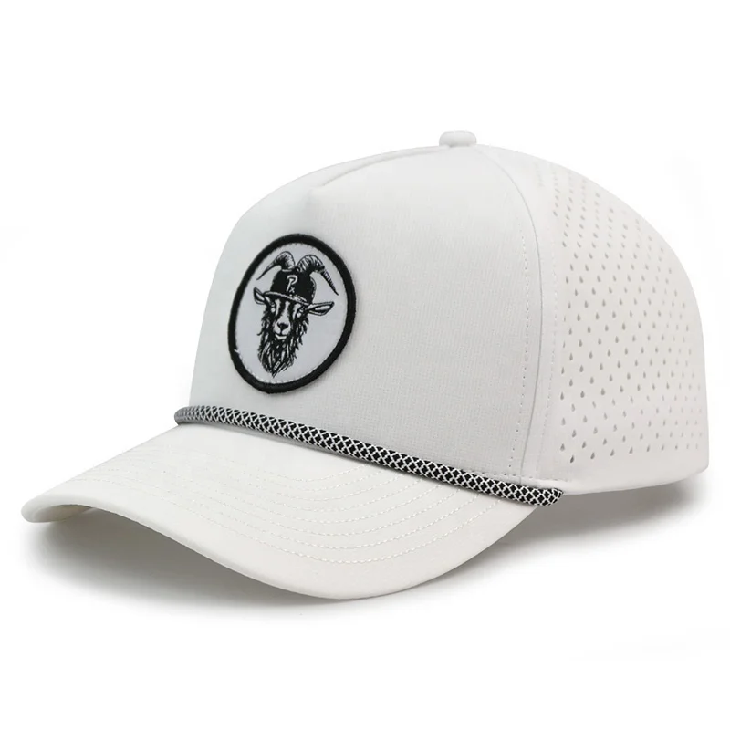 HN10 Women Men Waterproof Laser Cut Custom Embroidery Pvc Tpu Rubber Patch logo Perforated White Baseball Cap Rope Hat