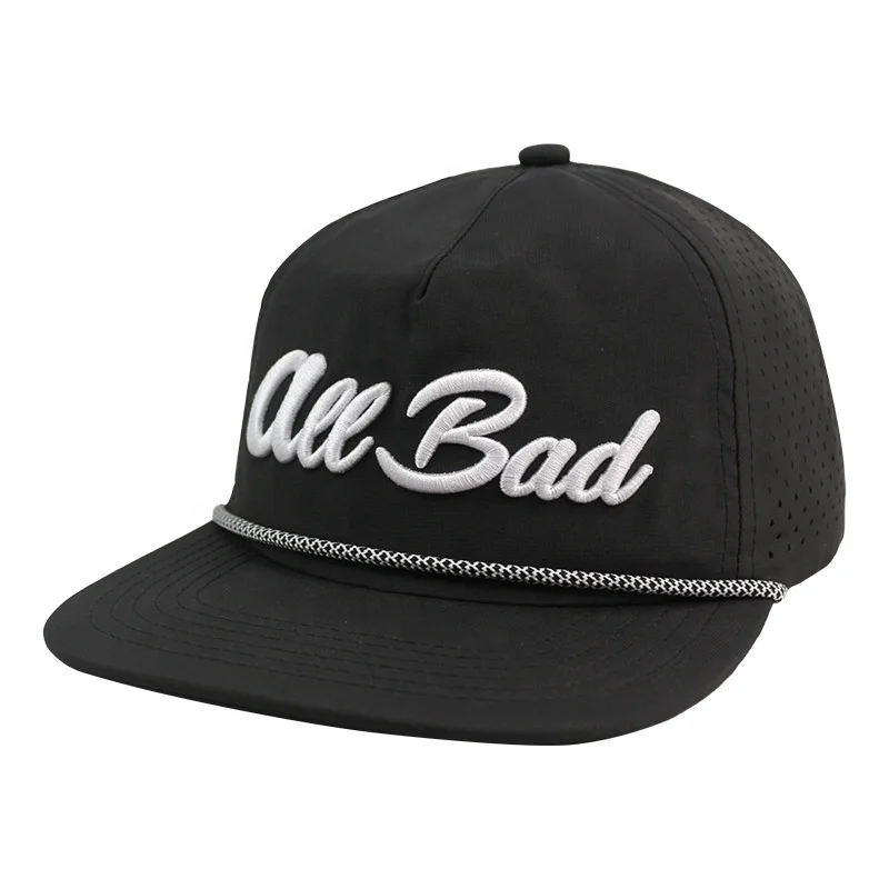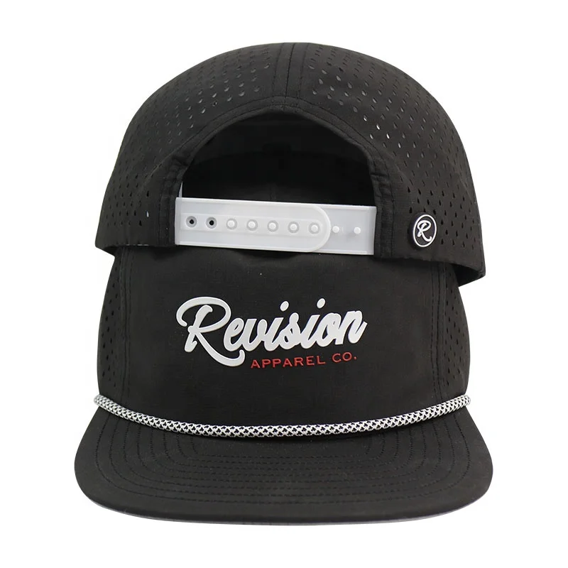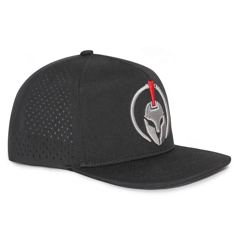Key Features: 5-Panel Design, 3D Embroidered Logo, Water Resistant, Laser Cut Hole Pattern, Snapback Closure, Durable Material