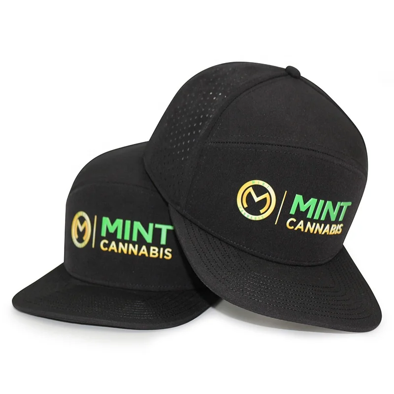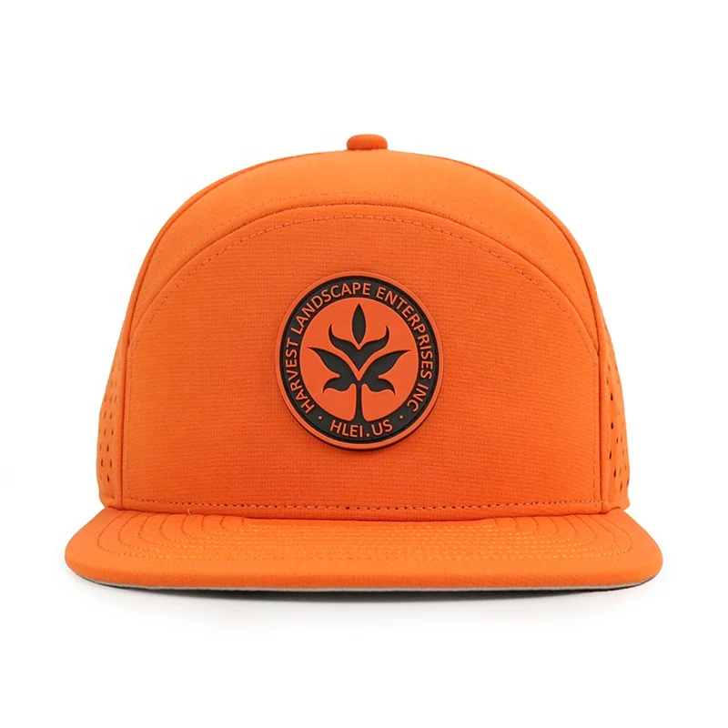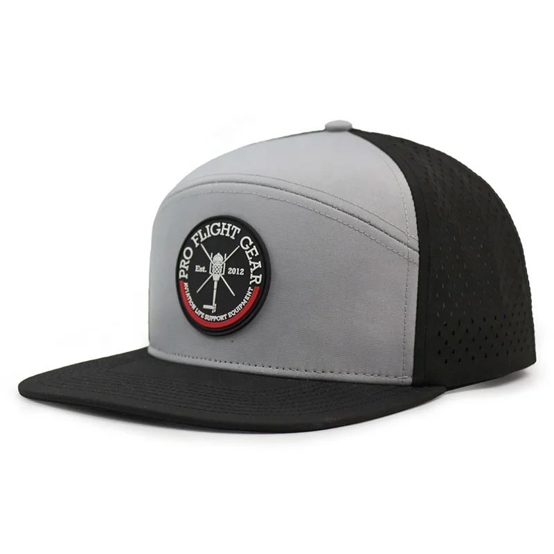 HS15 Custom Mens High Quality 6 Panel Flat Bill PVC Rubber Patch Logo Hip Hop Veracap Laser Cut Hole Perforated Snapback Hat Cap