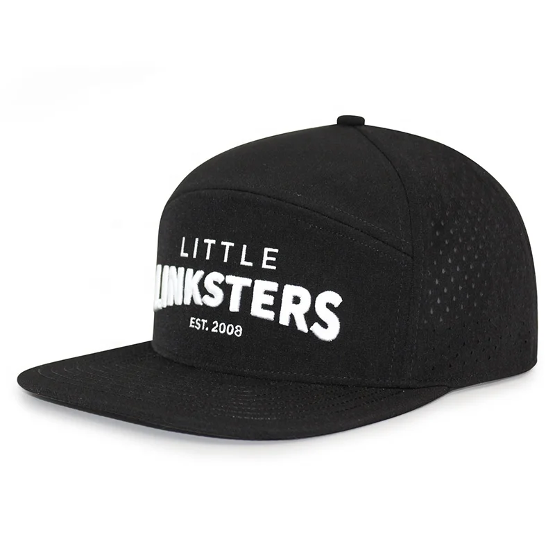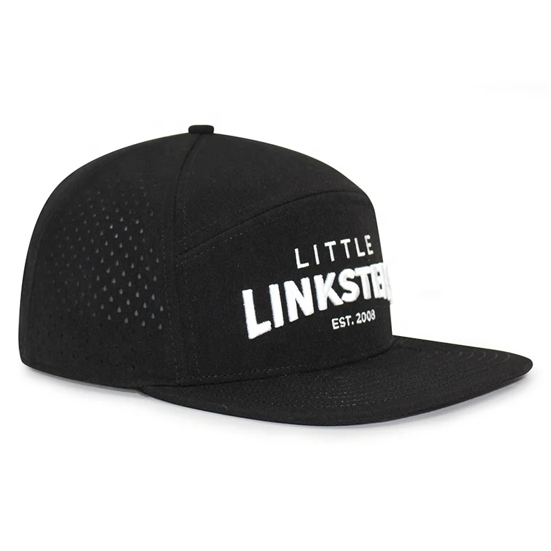 HS15 Unisex Custom High Quality 6 Panel Flat Bill 3D Embroidery Logo Hip Hop Veracap Laser Cut Hole Perforated Snapback Hat Cap