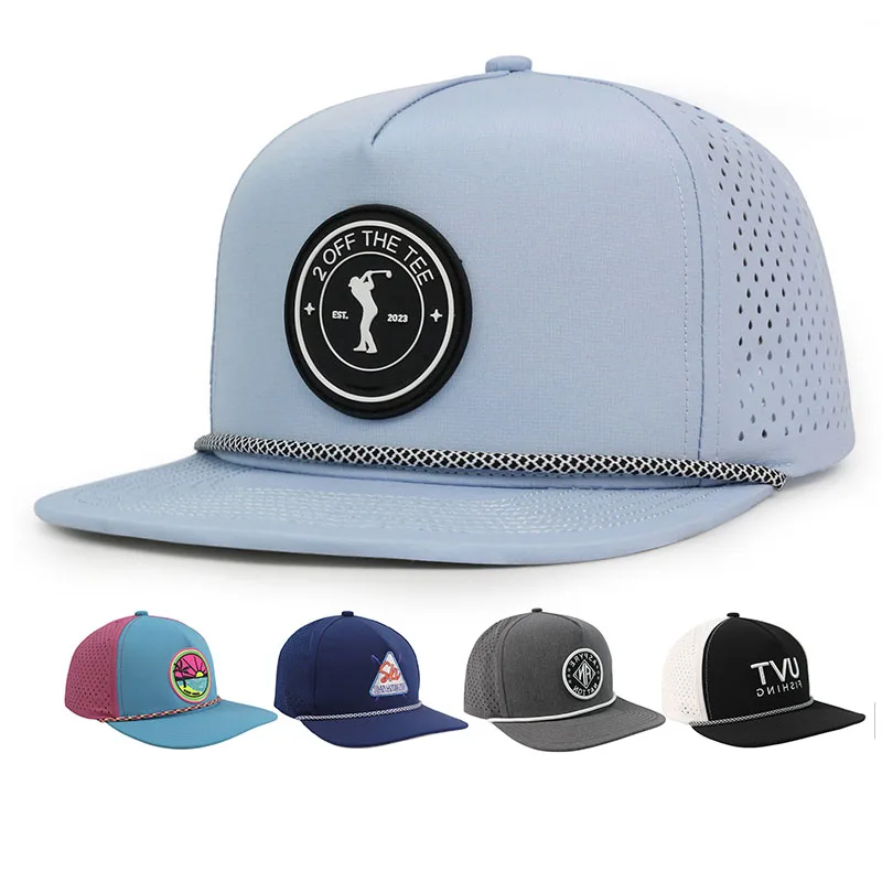 HS16 Custom Hat Flat Brim Waterproof Gorras Plain Snapback Water Resistant Proof Laser Cut Drilling Hole Hats Caps