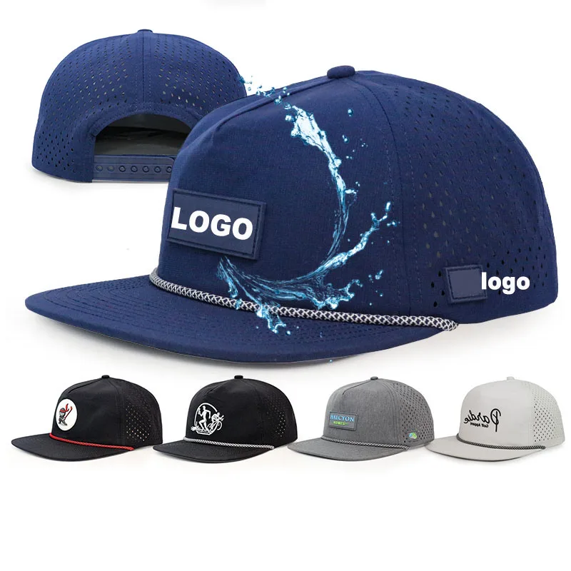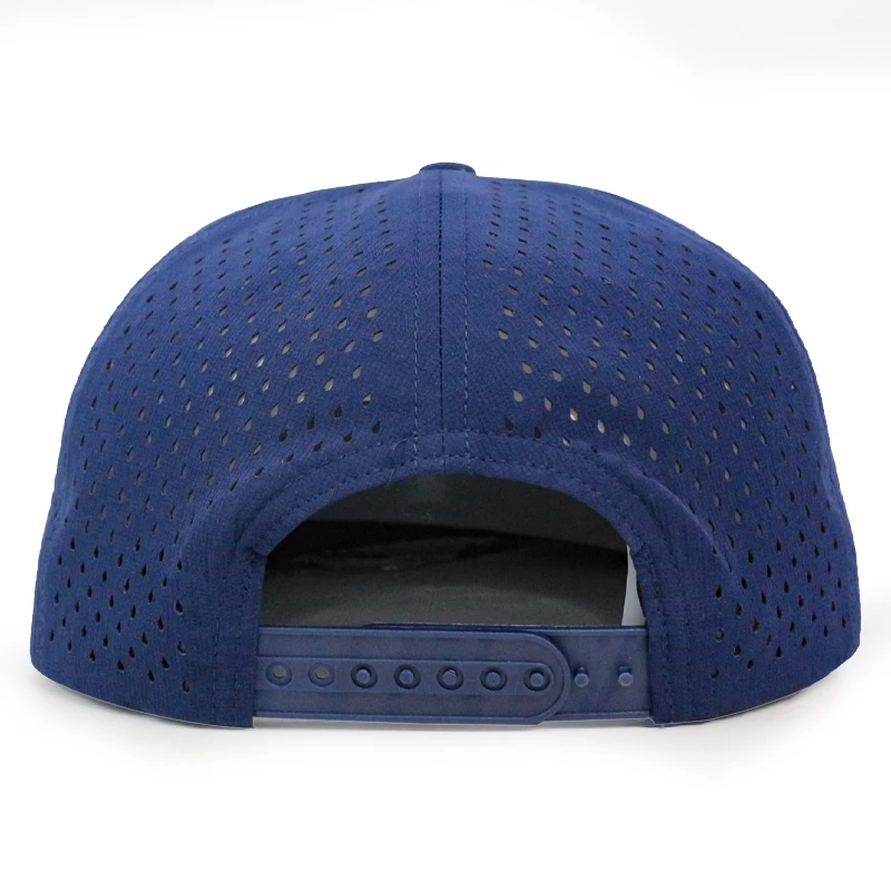 HS16 Customs Logo 5 Panel Golf Hat Cut Hole Perforated Mens Golf Hat Blue Holes Perforated Sports Golf Hat