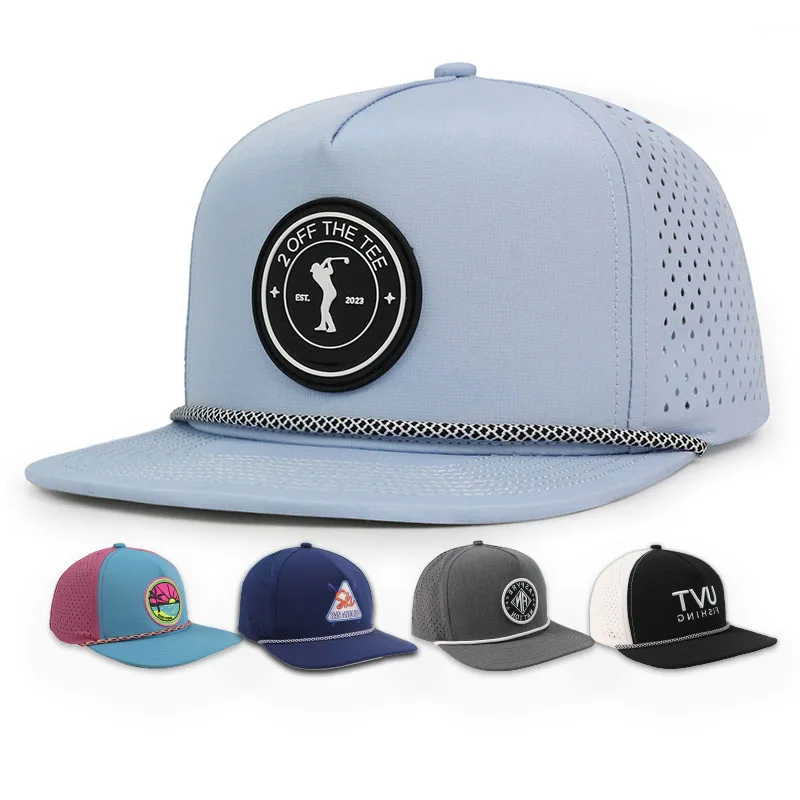 Here’s a rewritten product description, aiming for a professional, clear, SEO-friendly, and persuasive style, while adhering to your guidelines: Elevate your golf game and style with our premium 5-Panel Golf Hat. Designed for the modern golfer, this hat combines performance and a sleek aesthetic. The breathable, perforated design ensures optimal ventilation, keeping you cool and comfortable even during intense play. Strategically placed holes enhance airflow, preventing overheating. A classic five-panel construction provides a comfortable and secure fit. Featuring a distinctive cut-hole design and durable rope detailing, this hat adds a touch of sophistication to your on-course look. The vibrant blue color offers a sporty and stylish appeal. This versatile hat is perfect for golf, casual wear, or any outdoor activity. It’s a durable and fashionable accessory that will quickly become a favorite. Key Features: Five-Panel Construction for a comfortable fit Perforated Design for enhanced breathability Cut-Hole Detail for a unique style Durable Rope Accents Sporty Blue Color Ideal for Golf and Casual Wear We are confident you’ll love the quality and style of this golf hat.