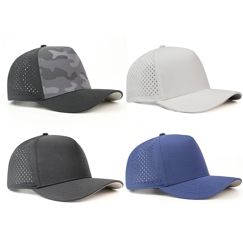 In Stock Out Door Running Hat Laser Cutting Hole Drilled 5 6 Panel Dad Cap Waterproof Performance Trucker Baseball Hat Cap