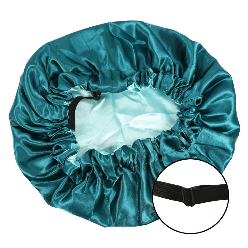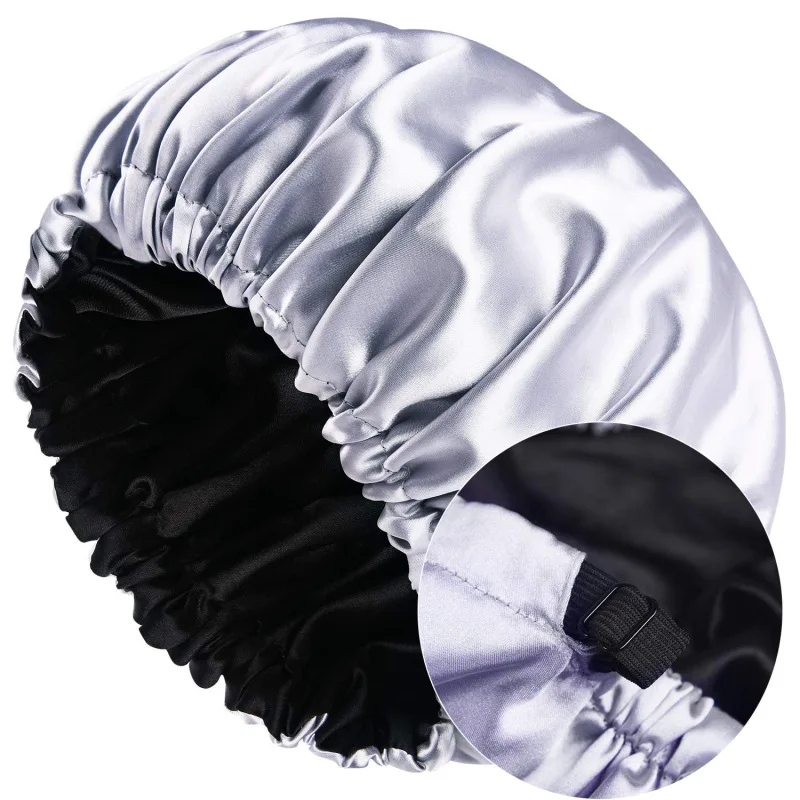 Large Nightcap Adjustable Elastic Double Layer Reversible Silk Satin Bonnet for Women Curly Hair