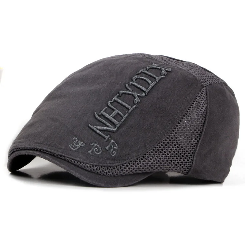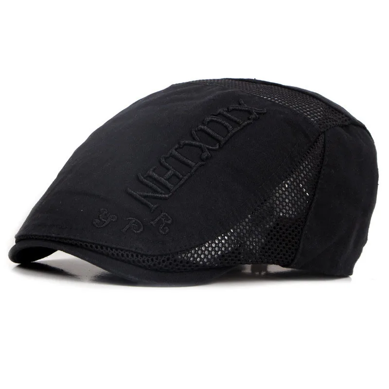 Men Women Mesh Hollow Cap Embroidery Adjustable Flat Cap Summer Soft Beret Gatsby Ivy Golf Cabbie Driving Trucker Hat