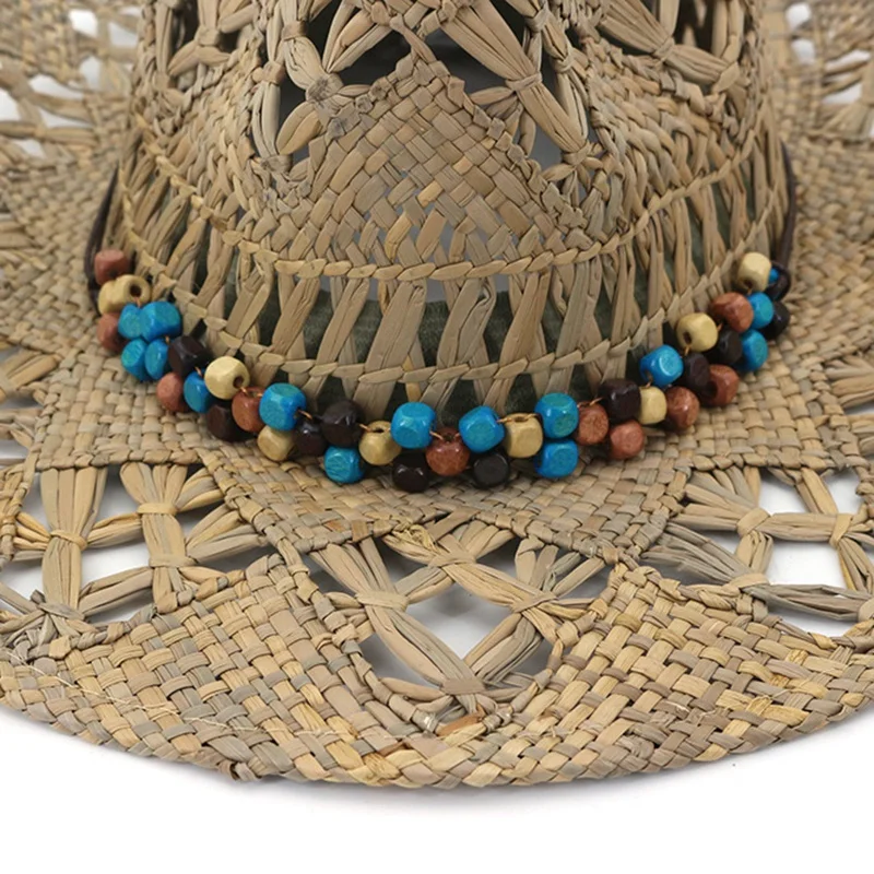 Mens Straw Sun Hat Wide Brim Fedora Beach Hat
