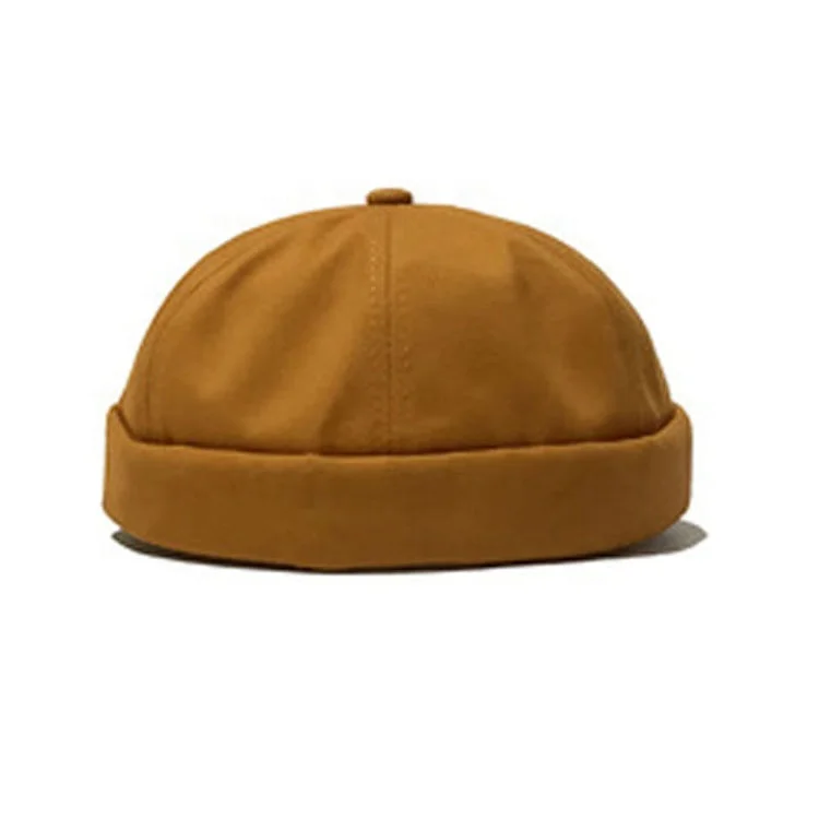 MIO Skull Cotton Brimless Hats Yellow 6 Panel Blank Docker Baseball Cap Adjustable Metal Buckle