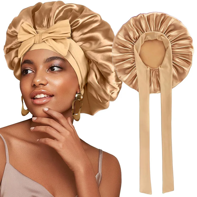 Large Night Cap Adjustable Silk Satin Bonnet for Curly Hair