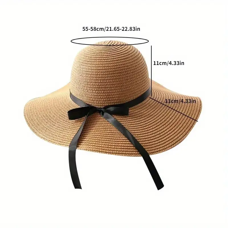 New Women’s Big Brim Sun Hat – Portable Style This stylish sun hat is designed for comfortable and effortless summer days. Featuring a generously sized brim, it provides excellent sun protection while remaining lightweight and easy to carry. The floppy fold design allows for convenient storage in a bag or backpack. Crafted maintains its appearance even after repeated use. The bowknot detail adds a touch of elegance and versatility. Perfect for beach trips, outdoor activities, or simply relaxing by the pool, this hat is a versatile accessory that complements any outfit. It’s a practical and fashionable way to stay cool and look great. Enjoy the warmth and style of this beautiful sun hat. Key Features: – Large, comfortable brim for sun protection – Floppy fold design for easy portability – Durable straw material – Stylish bowknot detail – Versatile accessory for summer enjoyment