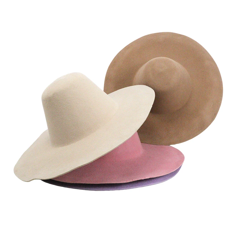 OEM Unisex Wide Brim Fedora Hats 100% Wool Felt