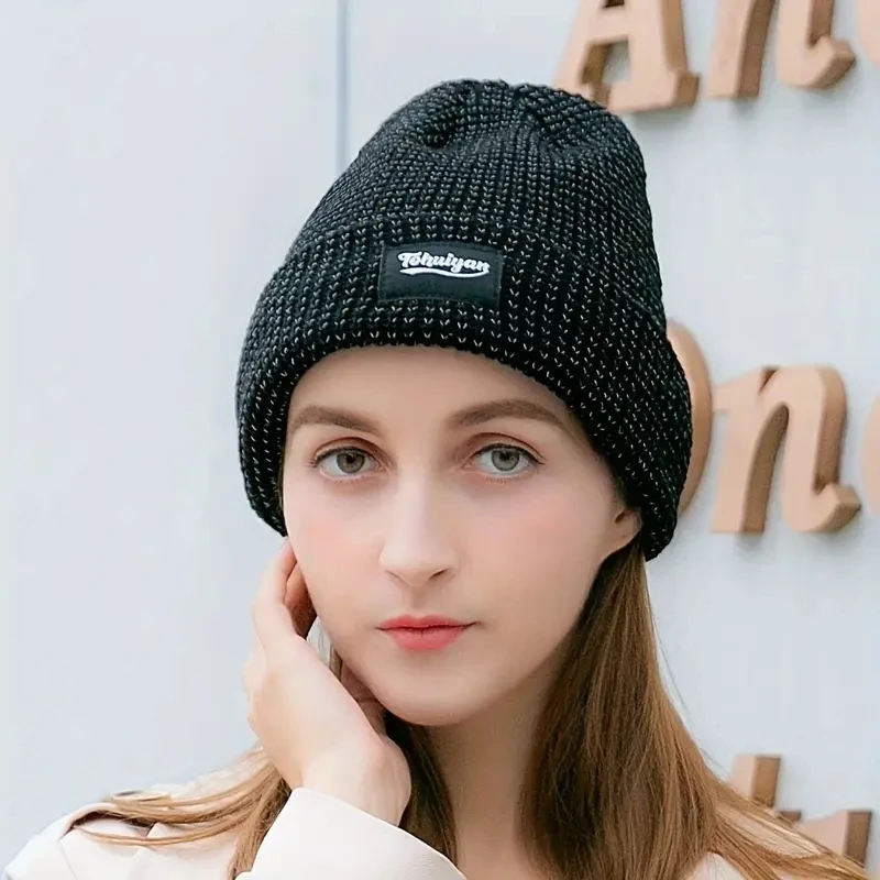 Reflective Knitted Beanie Nighttime Safety Hat Warm Skull Cap