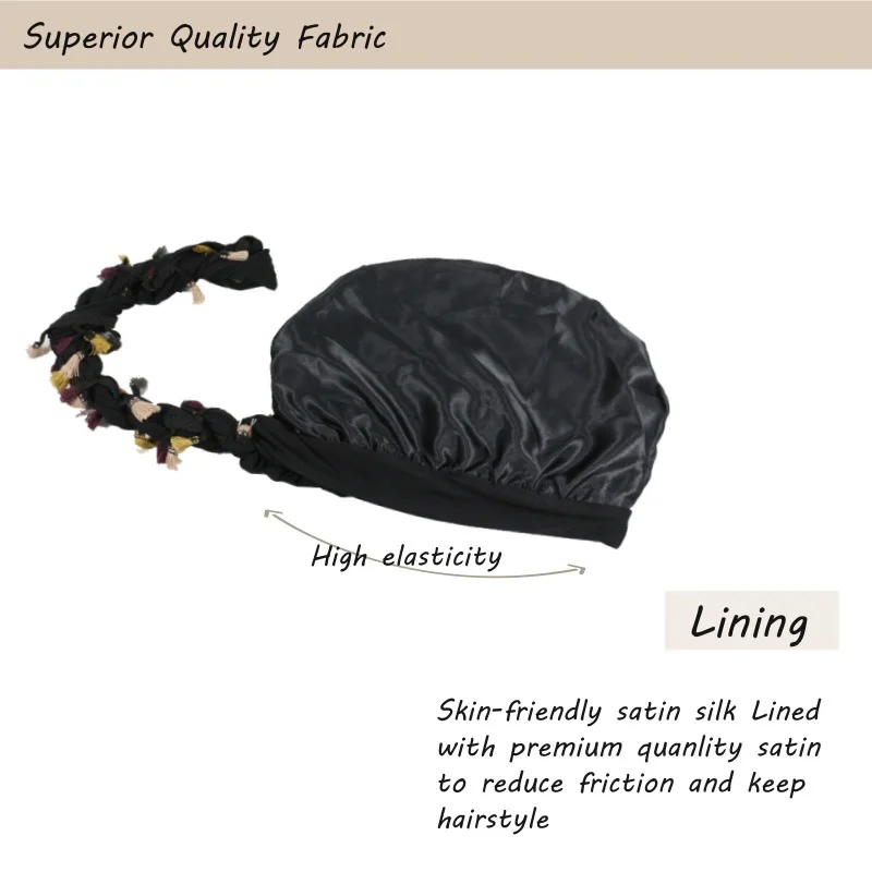 Satin Silk Lined Double Layer Hair Headwear Tassels – A Timeless Style Elevate your grooming routine with this luxurious Satin Silk Lined Double Layer Hair Headwear. Crafted for a refined and comfortable fit, this turban is designed to add a touch of sophisticated style to any look. The unique design features two layers of silky-smooth satin silk, providing a soft and elegant feel against the skin. A carefully constructed halo shape adds a touch of visual interest, while the pre-tied design ensures a secure and comfortable hold. The double layer construction offers exceptional durability and a flattering, voluminous appearance. This durable head wrap is perfect for men seeking a stylish and practical accessory. It’s ideal for everyday wear, adding a touch of confidence and enhancing your overall appearance. It’s a versatile piece that complements a wide range of outfits, ’s as beautiful as it is functional. Key Features: – Luxurious Satin Silk Lining – Double Layer Construction for Stability – Pre-Tied Halo Design – Durable and Comfortable Fit – Versatile Style for Men Specifications: – Material: Satin Silk – Length: [Insert Length Here – e.g., 24 inches] – Color: [Insert Color Here – e.g., Black, Navy, Charcoal] Instructions: 1. Wrap the headwear around the back of the head. 2. Secure the pre-tied halo band. — Would you like me to revise this further, perhaps focusing on a specific aspect (e.g., target audience, benefits)?