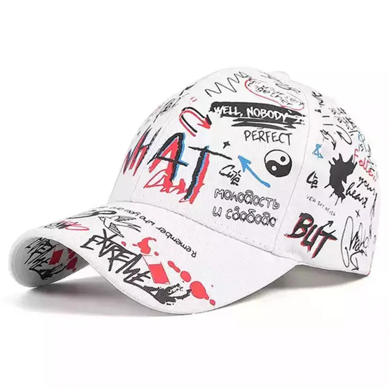 Product: Summer Letter Print Sun Sport Hat Graffiti Doodle Baseball Cap for Man Women Hip Hop Hat (Model #F9G896K)