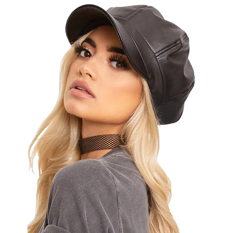 Unisex PU Leather Newsboy Octagonal Beret Painter Gatsby Cap