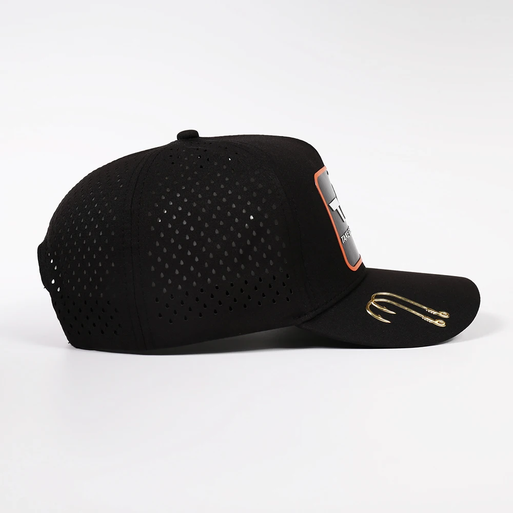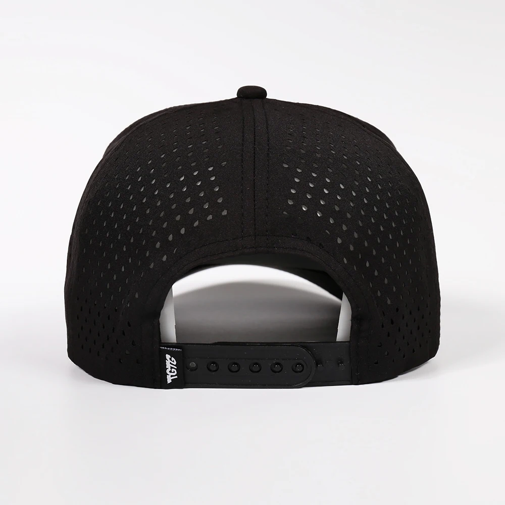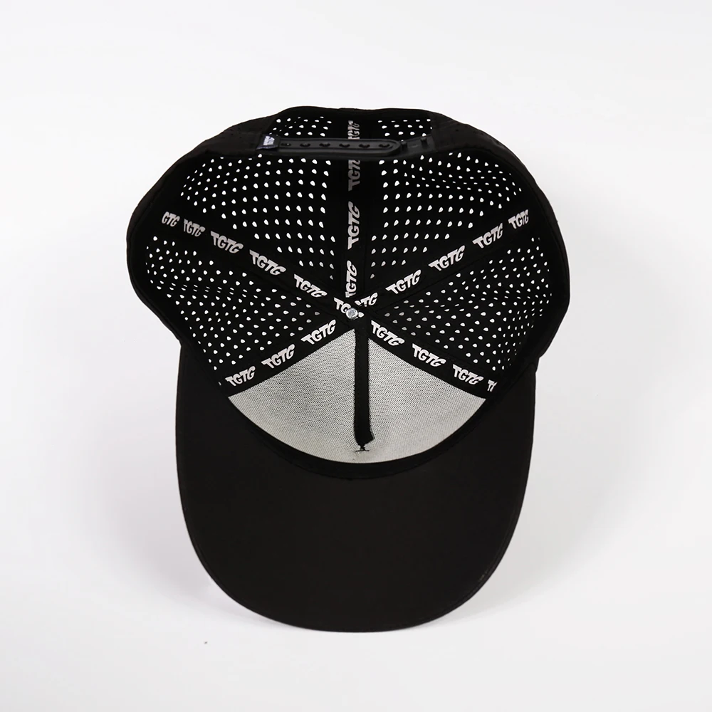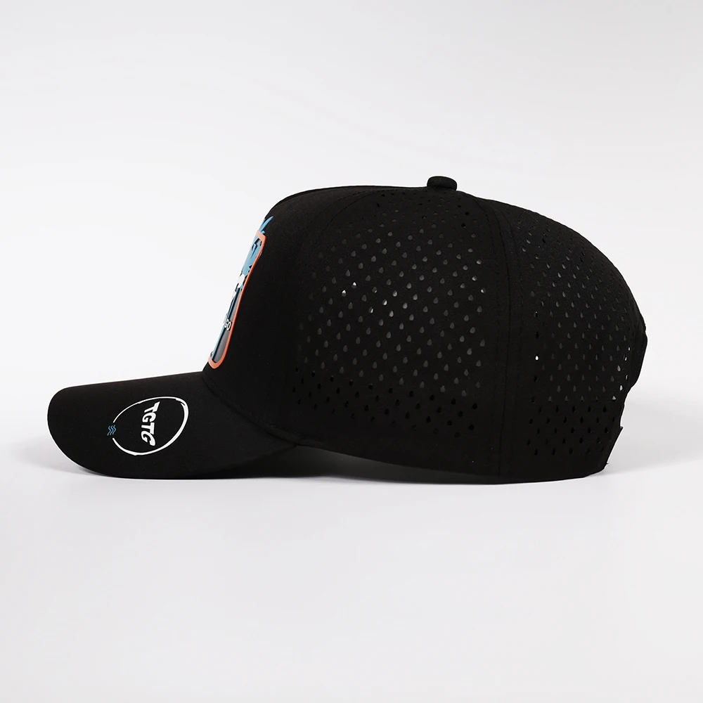 Wholesale Custom 5 Panel Polyester Structured Screen Print Logo Sport Hat Laser Cut Hole Perforated Quick Dry Baseball Cap