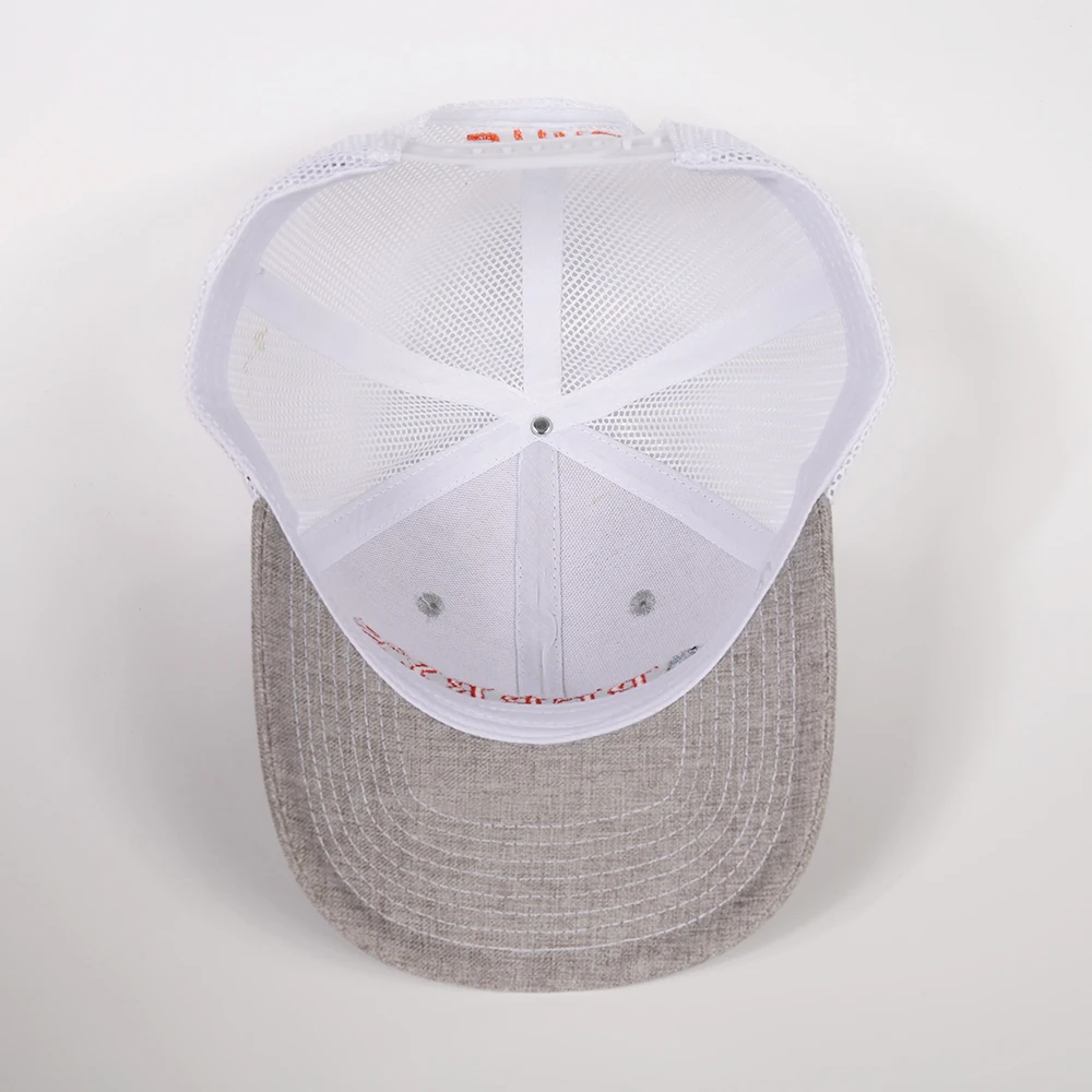 Wholesale Custom 6 Panel Grey Cotton Mesh Sports Hat Mens Classic Structured Embroidery Logo Snap Back Trucker Cap