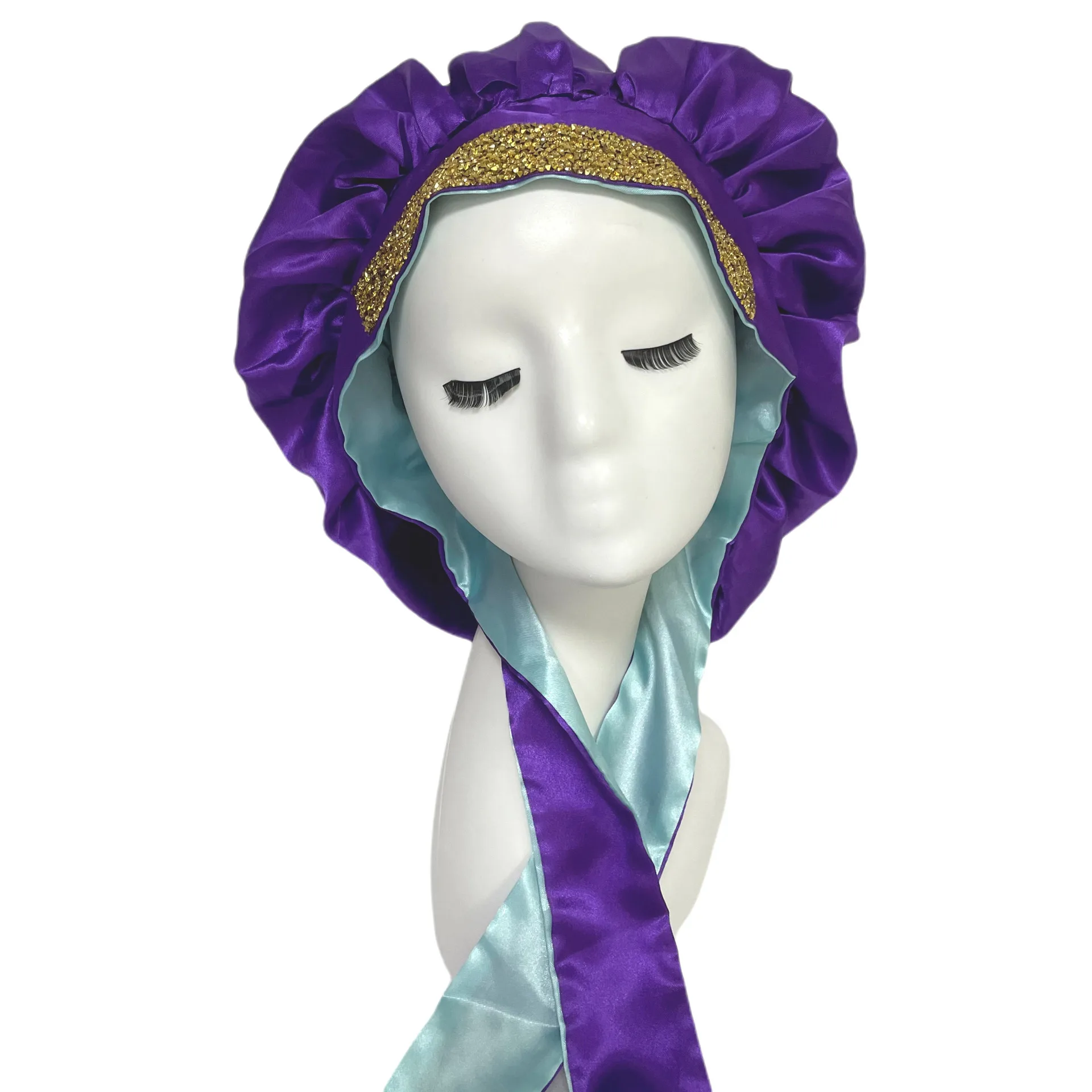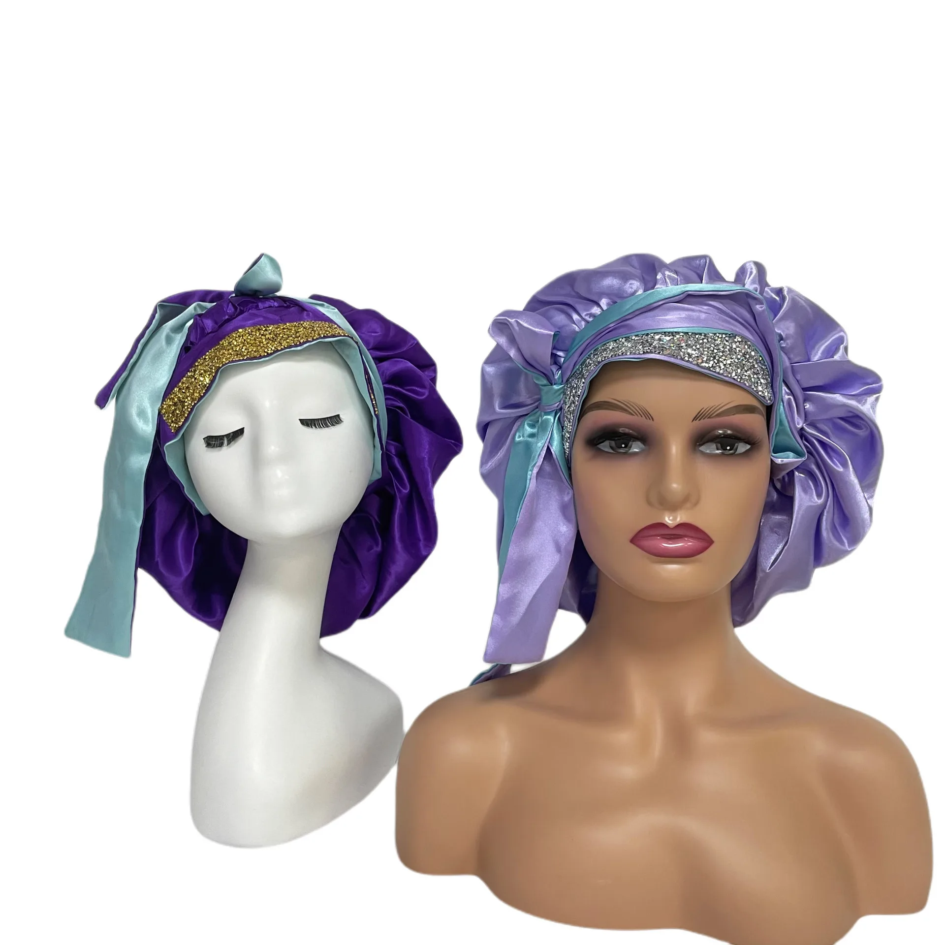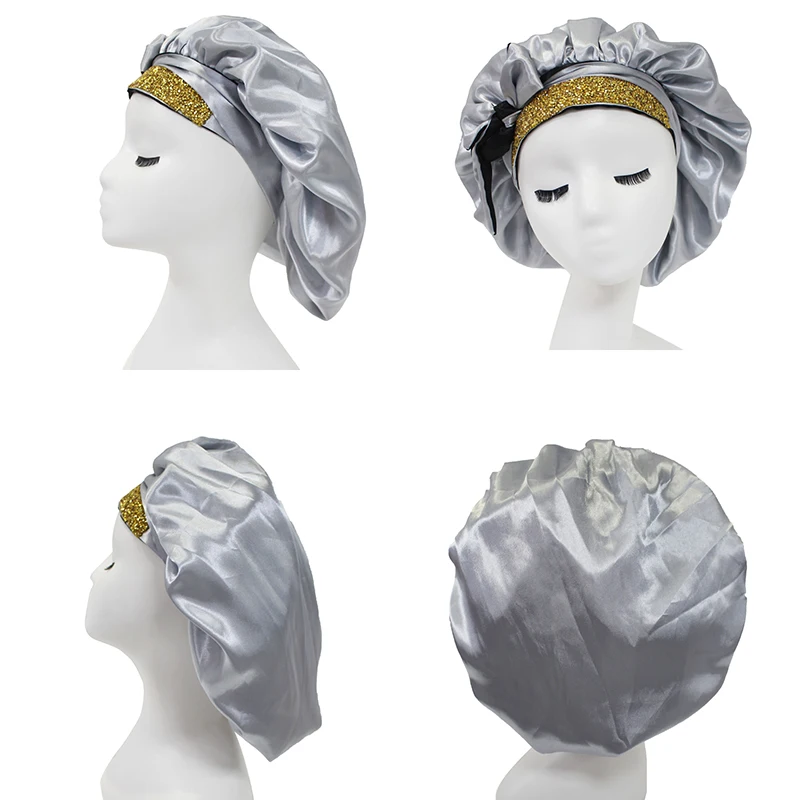 Elevate your nightly hair care routine with our premium double-layer satin bonnet, designed to provide the ultimate blend of comfort, protection, and glamour. This sophisticated hair accessory features a spacious, wide-edge design that accommodates all hair lengths and textures, ensuring your style remains intact while you sleep. Crafted with a luxurious silk-feel satin interior, this bonnet minimizes friction, reduces breakage, and helps your hair retain essential moisture throughout the night. The dual-layer construction provides enhanced durability and a premium feel, making it an essential addition to your beauty regimen. What sets this piece apart is the stunning exterior adorned with shimmering rhinestones and a sparkling diamond-style band. The integrated tie ensures a secure, customizable fit that stays in place all night long, while the dazzling finish adds a touch of elegance to your loungewear. Whether you are protecting braids, curls, or delicate styles, this rhinestone-encrusted bonnet offers a seamless combination of high-end fashion and functional hair protection. Key Features: Premium double-layer satin construction for maximum hair protection and moisture retention. Wide-edge design provides a comfortable fit for all hair types and volumes. Secure tie-band closure ensures the bonnet stays perfectly in place while you sleep. Beautiful rhinestone and diamond-accented exterior for a sophisticated and glamorous look. Reduces hair breakage, frizz, and tangles caused by friction against standard pillowcases. Easy to maintain and perfect for daily use or special overnight care. Upgrade your sleep routine with a bonnet that offers both superior hair health benefits and unmatched style.