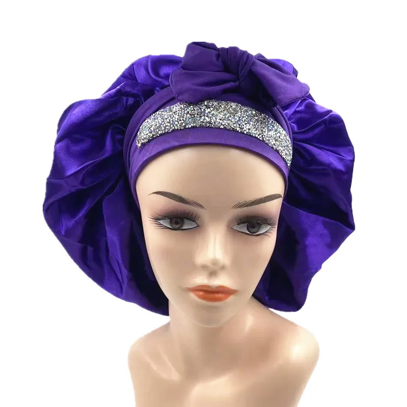 Extra Large Silk Satin Sleeping Cap Women Hair Care Bonnet with Elastic Band